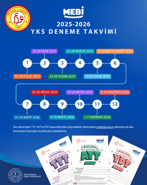 MEB Ortaöğretim Genel Müdürlüğü tarafından hazırlanan Türkiye Geneli MEBİ YKS denemeleri; 11. sınıf, 12. sınıf ve mezun öğrenciler için TYT, AYT ve YDT sınavlarını kapsayacak şekilde, planlanmıştır.