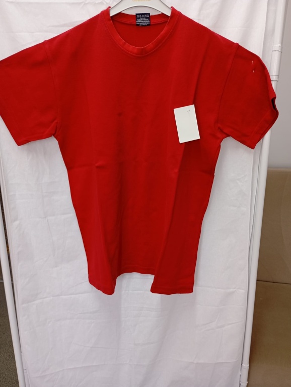 2. Tamamı kırmızı tek renk, yuvarlak yaka, iki iplikli, sol göğsün üzerinde sonradan eklenecek okul logosu/arması olan tişört